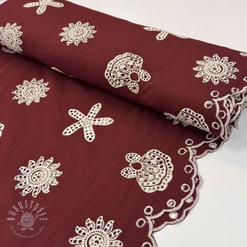 Baumwollstoff EMBROIDERY Sea ornaments bordeaux