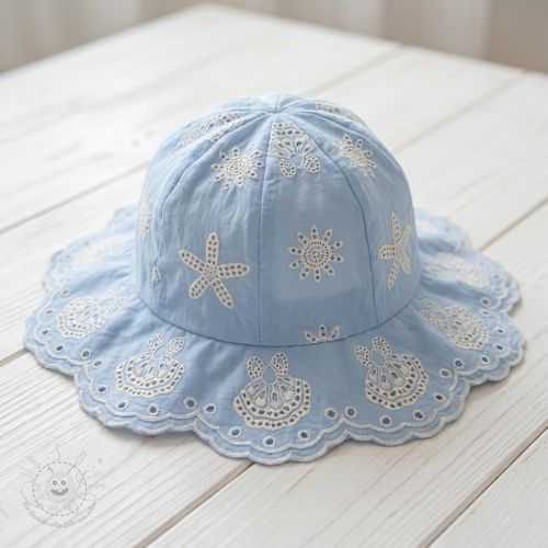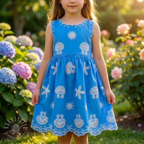 Baumwollstoff EMBROIDERY Sea ornaments light blue