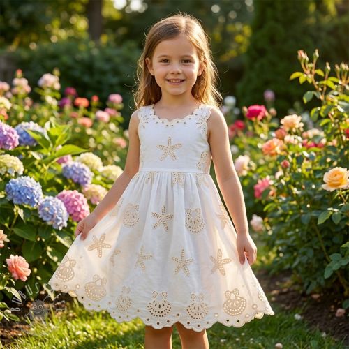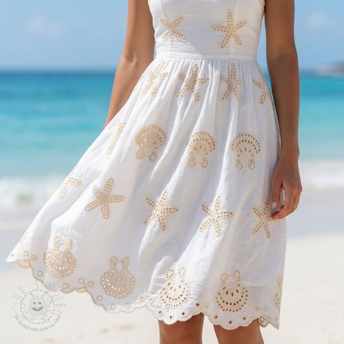 Baumwollstoff EMBROIDERY Sea ornaments white