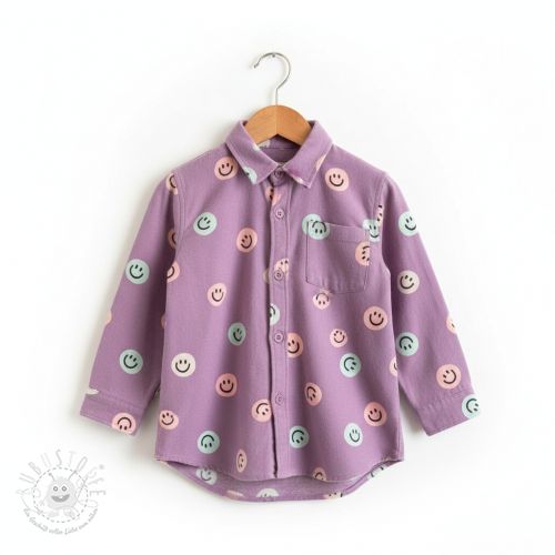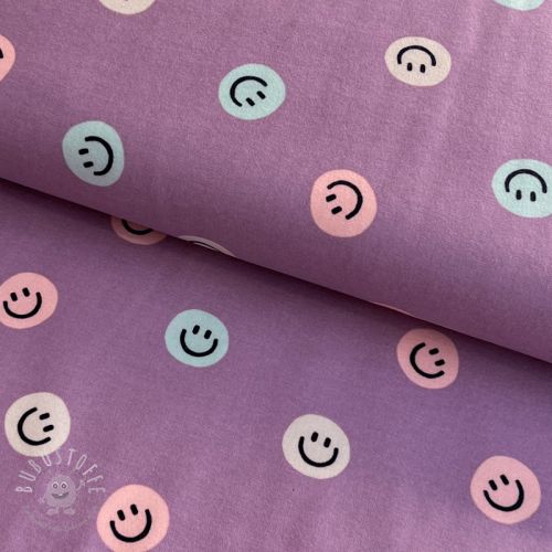 Baumwollstoff FLANNEL Happy faces off white lilac