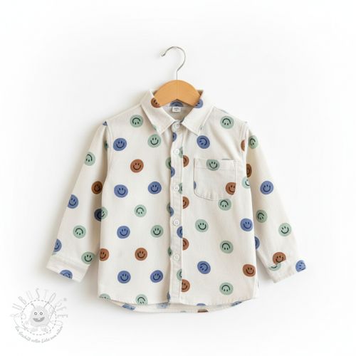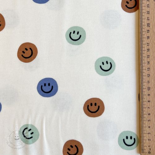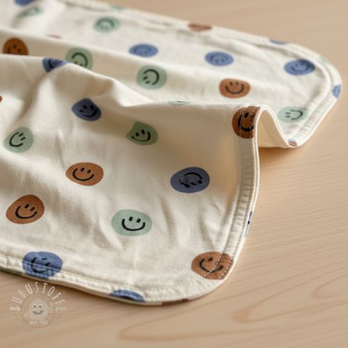 Baumwollstoff FLANNEL Happy faces off white lilac