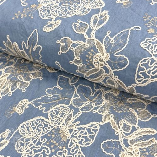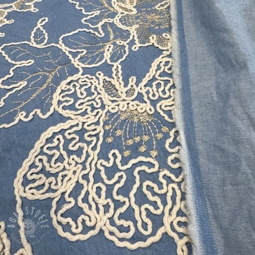 Baumwollstoff JEANS EMBROIDERY Bouquet light blue