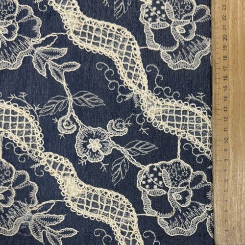Baumwollstoff JEANS EMBROIDERY Flora design A