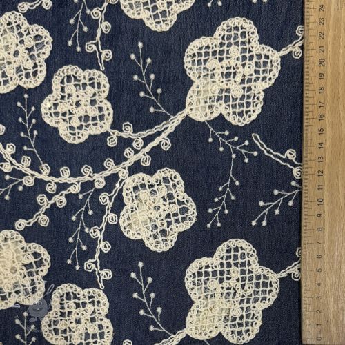 Baumwollstoff JEANS EMBROIDERY Flora design C