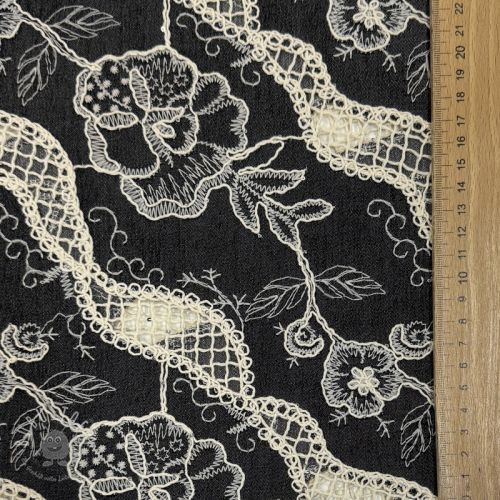 Baumwollstoff JEANS EMBROIDERY Flora design E