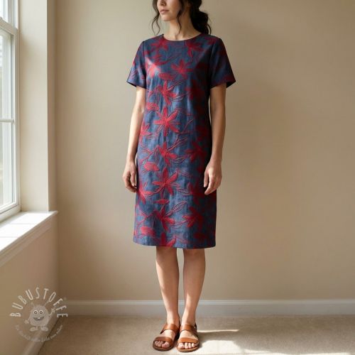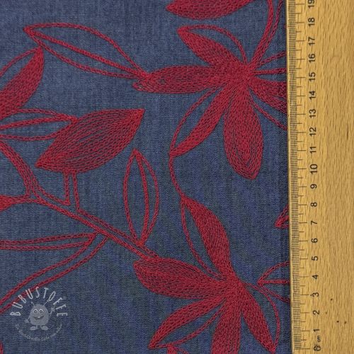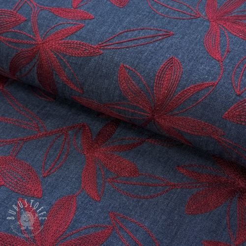 Baumwollstoff JEANS Embroidery Flowers burgundy
