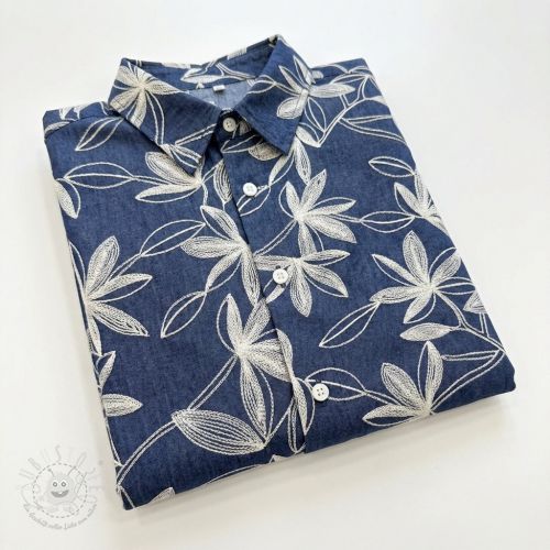 Baumwollstoff VOILE EMBROIDERY Flowers navy