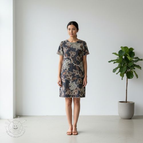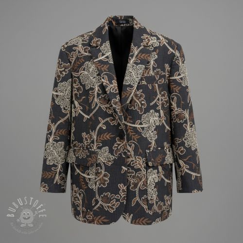 Baumwollstoff JEANS Embroidery leaves dark blue
