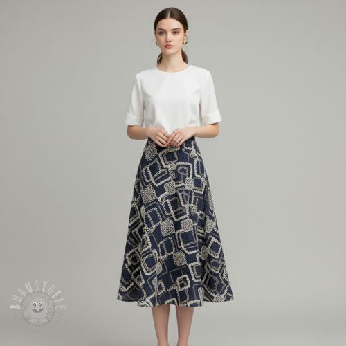 Baumwollstoff JEANS EMBROIDERY Square dark blue