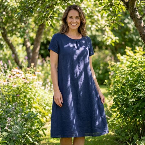 Baumwollstoff mit Leinen dark blue