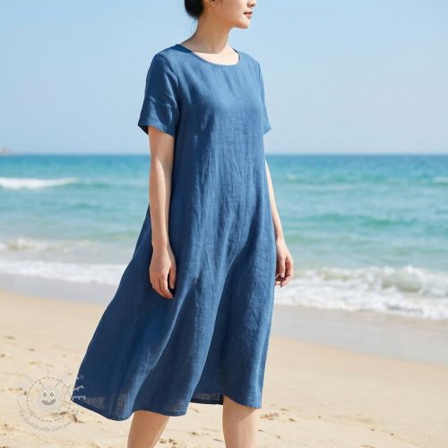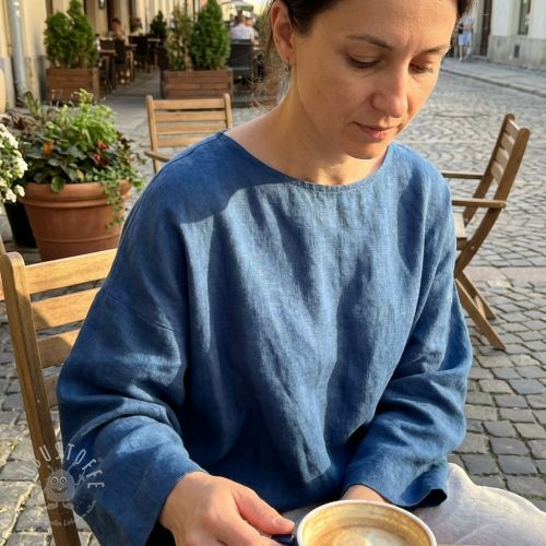Baumwollstoff mit Leinen PREMIUM steel blue