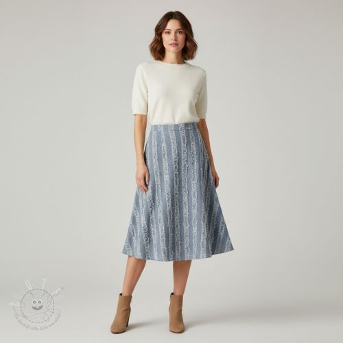 Baumwollstoff mit Leinen Vintage Fringe Stripe blue