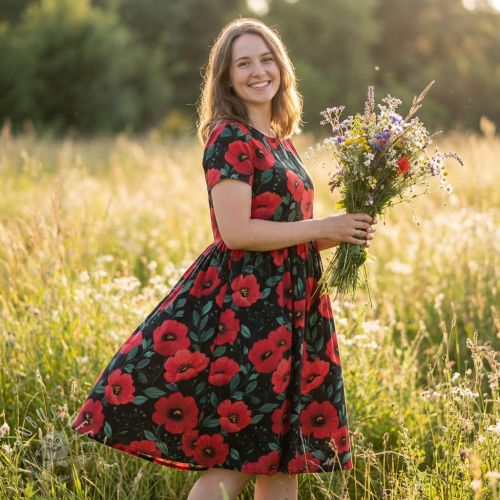 Baumwollstoff Poppy black digital print