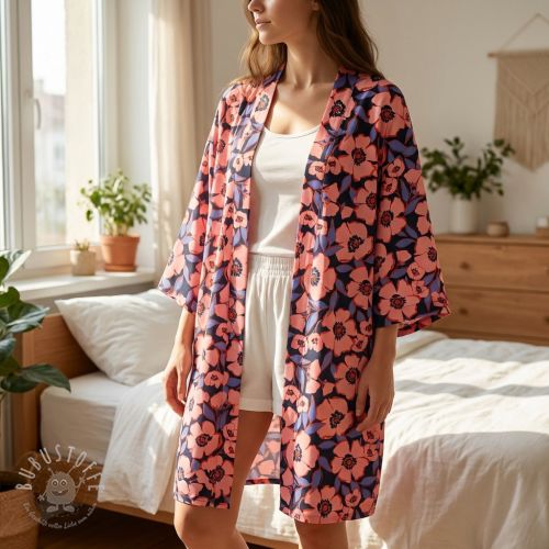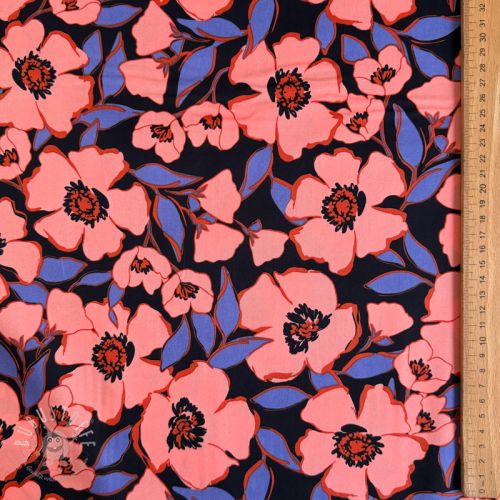 Baumwollstoff SATIN Flower Kala navy