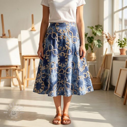 Baumwollstoff TIE DYE EMBROIDERY Elise tape design A