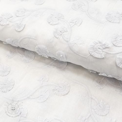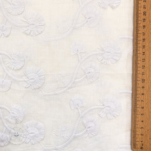 Baumwollstoff VOILE EMBROIDERY Flowers with stem white