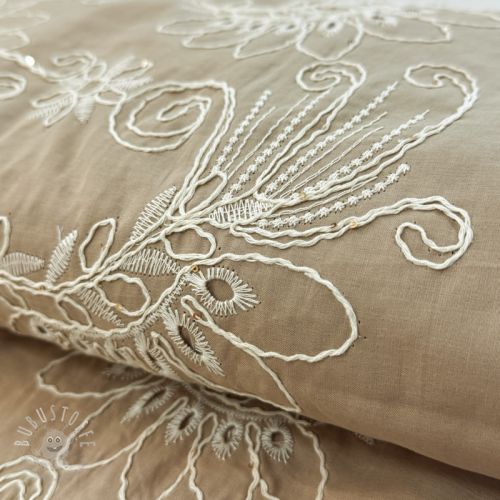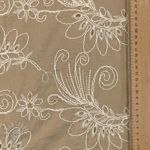 Baumwollstoff VOILE EMBROIDERY Kokka natural