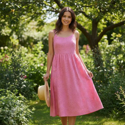 Baumwollstoff VOILE EMBROIDERY Vintage fuchsia