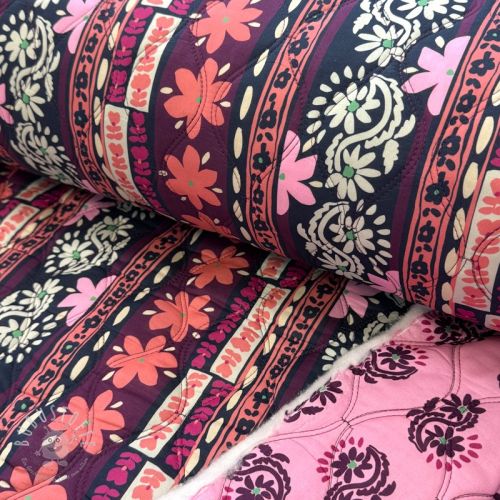 Baumwollstoff VOILE STEPPED Daria flower aubergine digital print