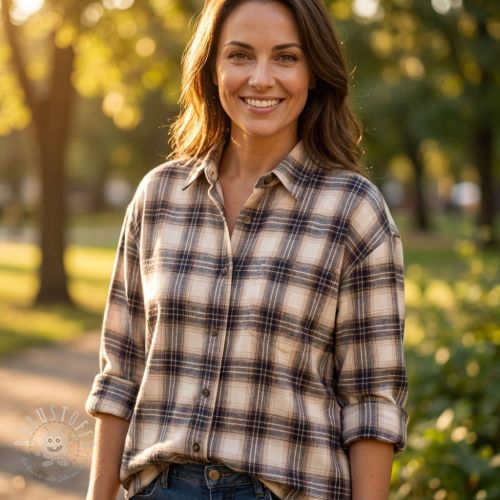 Baumwollstoff YARN DYED BRUSHED Check Tim beige