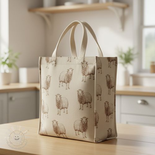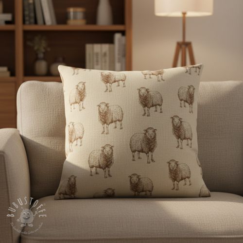 Dekostoff Linenlook Pen Drawing Sheep digital print