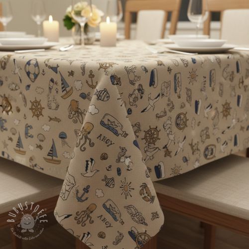 Dekostoff Linenlook premium Nautical Doodle