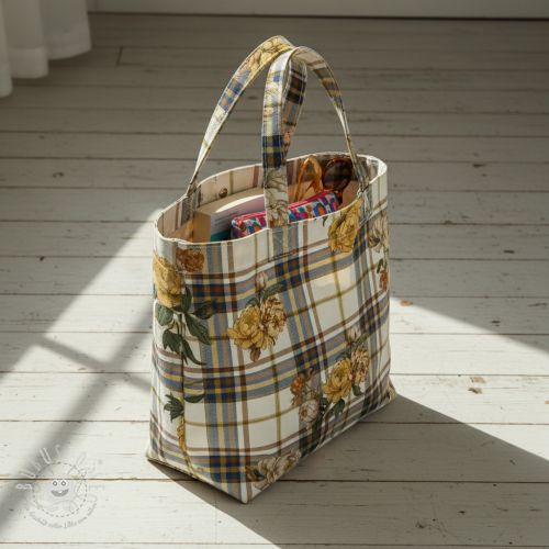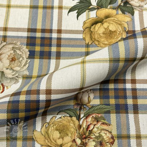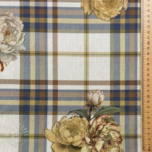 Dekostoff premium Linenlook Classic Peony Check digital print