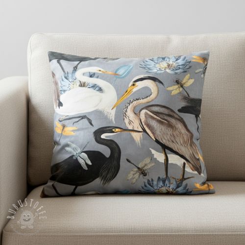 Dekostoff VELVET Heron bird steel grey
