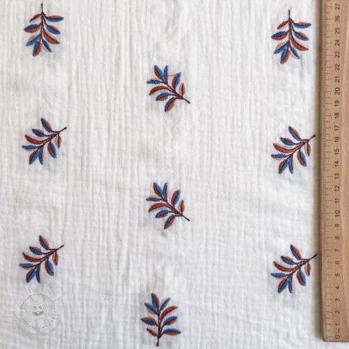 Double gauze/musselin EMBROIDERY Leaves white