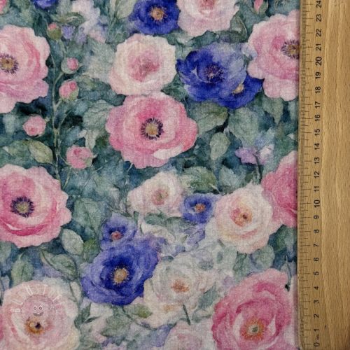 Double gauze/musselin Flower Maria petrol digital print