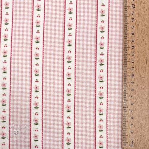 Double gauze/musselin Flowers check pink digital print