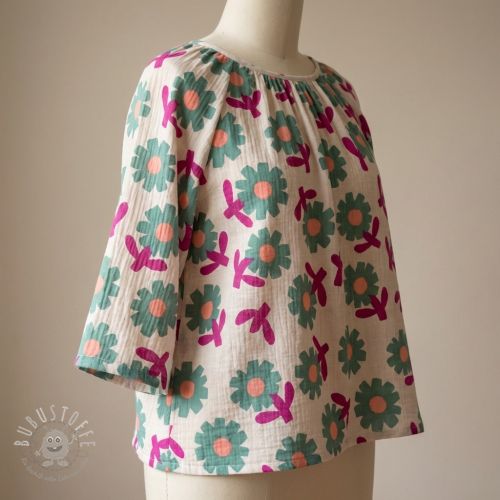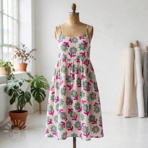 Double gauze/musselin Flowers natural/pink by JENNIFER BOURON ORGANIC