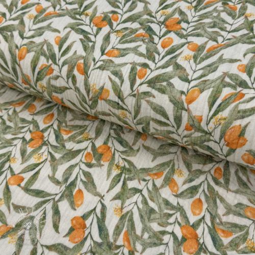 Double gauze/musselin Leaves off white digital print