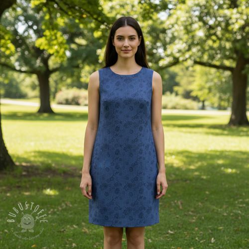 JEANS 9,5 OZ Embossed Flowers dark blue