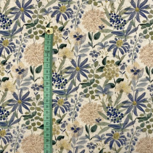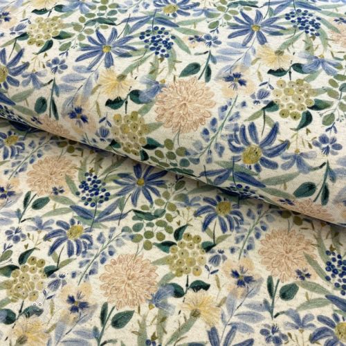 Jersey Baumwoll-Leinen Flowers ecru blue digital print