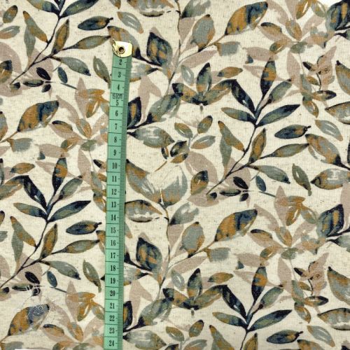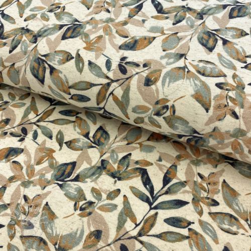 Jersey Baumwoll-Leinen Leaves old green ochre digital print