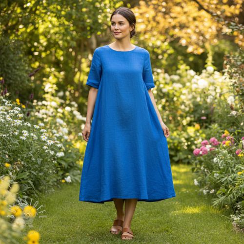 Leinenstoff gewaschen 170 g cobalt