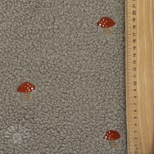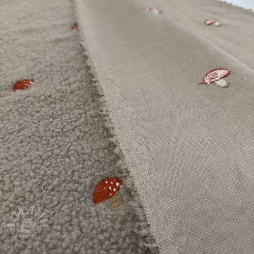 Mantelstoff EMBROIDERY Little mushrooms pebble