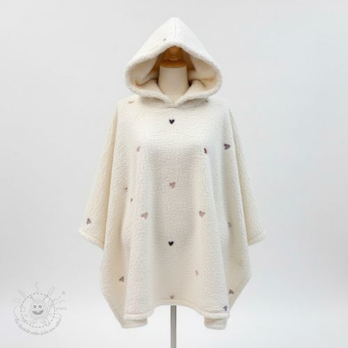 Mantelstoff TEDDY EMBROIDERY Hearts ecru