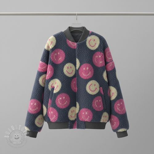 Mantelstoff TEDDY JACQUARD Happy faces jeans