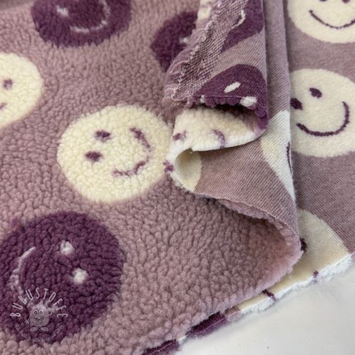 Mantelstoff TEDDY JACQUARD Happy faces mauve
