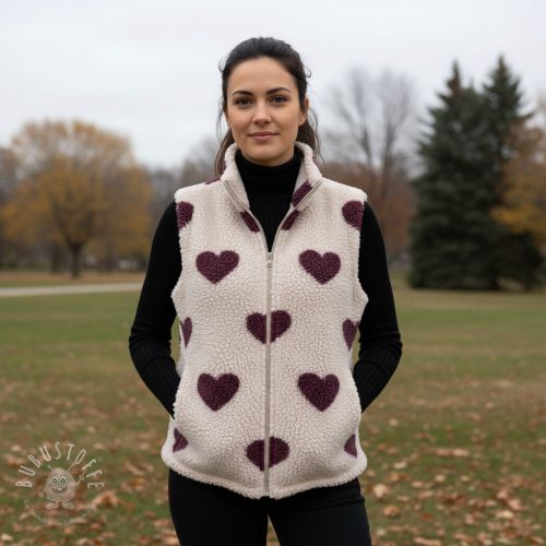 Mantelstoff TEDDY JACQUARD Hearts rouge