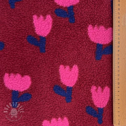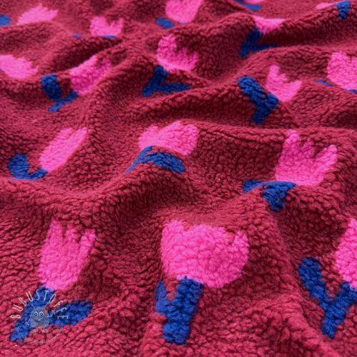 Mantelstoff TEDDY JACQUARD Tulips dark red