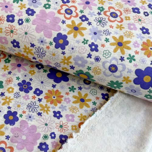 Sweat kuschel Glitter flowers ecru melange