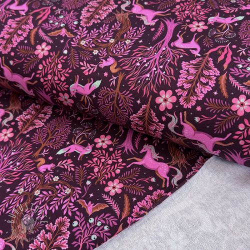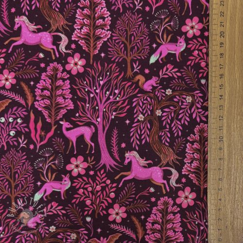 Sweatstoff Forest animals bordeaux digital print