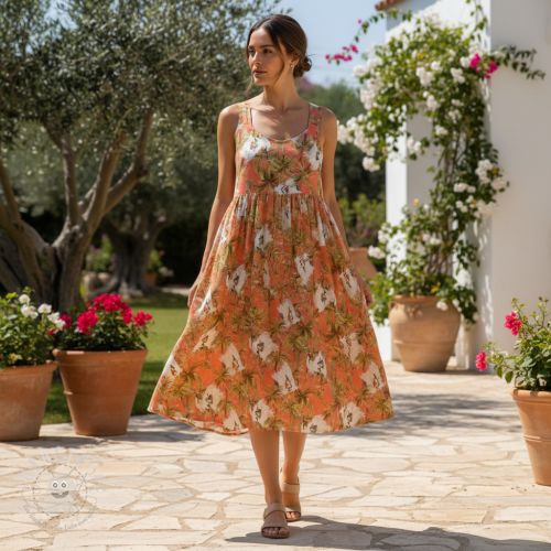 Viskosestoff leinen Crane bird design A digital print