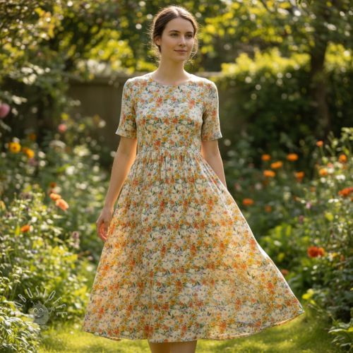 Viskosestoff leinen CREPE Flowers yellow digital print