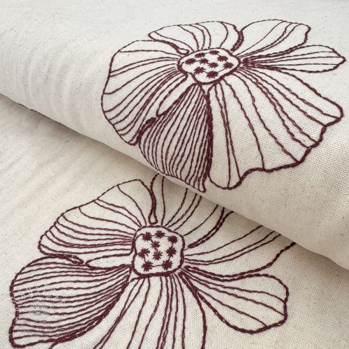 Viskosestoff leinen EMBROIDERY Flower Maya natural