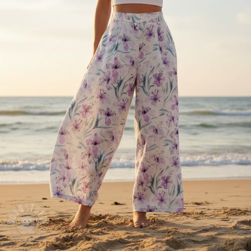 Viskosestoff leinen Natural Lin Laurel purple digital print