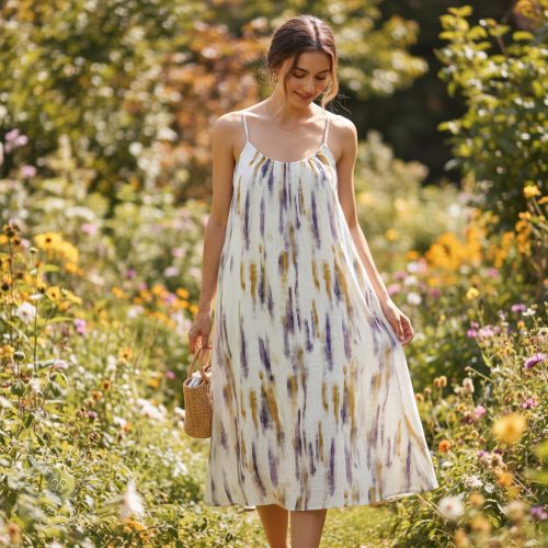 Viskosestoff leinen Natural Lin Lina purple digital print